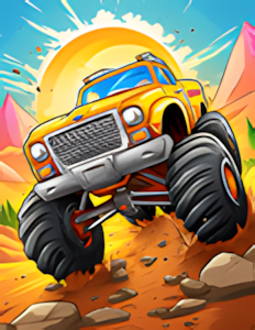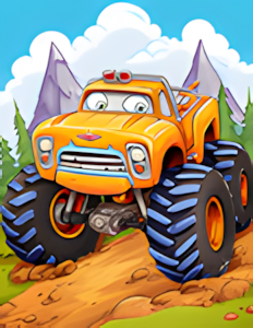 - Action-Packed Scenes: Every truck is captured mid-stunt – flipping, jumping, or grinding over obstacles. Kids will love bringing these adrenaline-fueled moments to life with crayons, markers, or colored pencils.